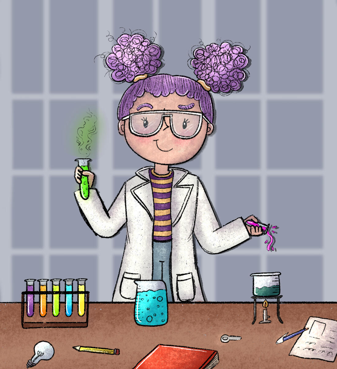 Creative and fun, enjoys dabbling with chemistry and flying her air powered glider.